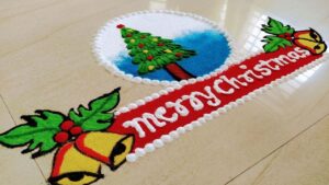 हैपी मैरी क्रिसमस की रंगोली डिजाइन