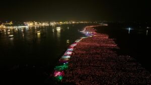 गंगा पार की रेत पर ‘कोरियोग्राफ और सिंक्रोनाइज ग्रीन क्रैकर्स शो’ ने पर्यटकों को मंत्रमुग्ध कर दिया। आसमान में गूंजती संगीतबद्ध आतिशबाज़ी और गंगा की लहरों पर प्रतिबिंबित रंगों ने दृश्य को और भी दिव्य बना दिया।