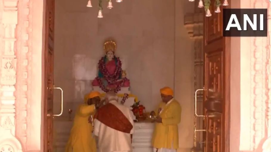 प्रधानमंत्री नरेंद्र मोदी ने सीएम योगी आदित्यनाथ और राज्यपाल आनंदीबेन पटेल के साथ श्री राम जन्मभूमि मंदिर में ऐतिहासिक ध्वजारोहण से पहले माता अन्नपूर्णा मंदिर में पूजा-अर्चना की.