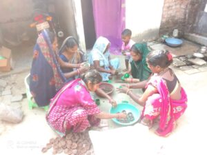 गाय के गोबर से बने दीपों के निर्माण में जुटी हैं महिलाएं